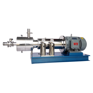 固液混合乳化泵是通过主轴的吸料装置在狭窄的过道内进行高速运动,而产生的真空将比重略轻的固体物料吸入乳化泵工作腔与液体进行混合均质输送。一般连接于反应釜(罐)的出口处,当液体自流于乳化泵时与吸入的固体物料进行高速混合均质,使固体物料快速得到混合、反应、解聚、溶解、均质等工艺流程。