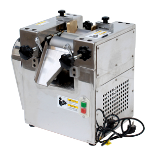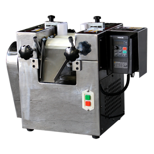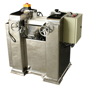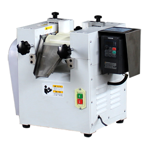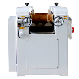 实验室三辊研磨机适用于需要分散而细度要求较高的膏体或高粘度物料使用;通过水平的三根辊筒的表面相互挤压,手摇式调节辊筒之间的间距,以不同速度的摩擦达到研磨效果。装有紧急制动按钮,防止落入异物导致的设备损坏。辊子使用特殊硬质合金浇铸而成,也可以使用纯氧化锆材质。