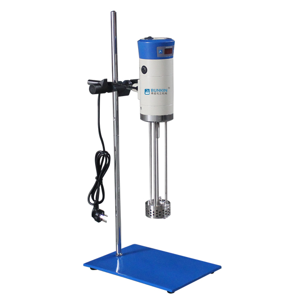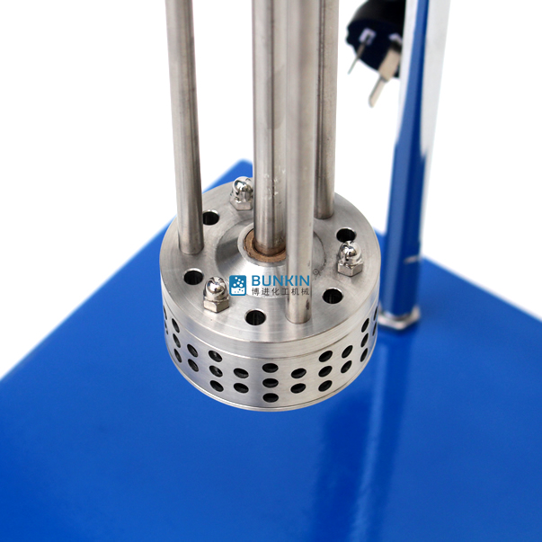 实验室小型乳化机强劲的马达进行高速旋转使转、定子之间形成真空,物料从转、定子上部和底部吸入。强大动能使转子产生极高的线速度,使物料在转、定子间隙之间经过强烈的撞击、破碎、离心挤、液层摩擦、强力剪切之后飞射出去,在多种不同方向力的作用下,产生强大紊流。物料在适量乳化剂和成熟工艺下经过一定时间反复循环解聚、分散、均质、细化、剪切产生稳定乳状液。
