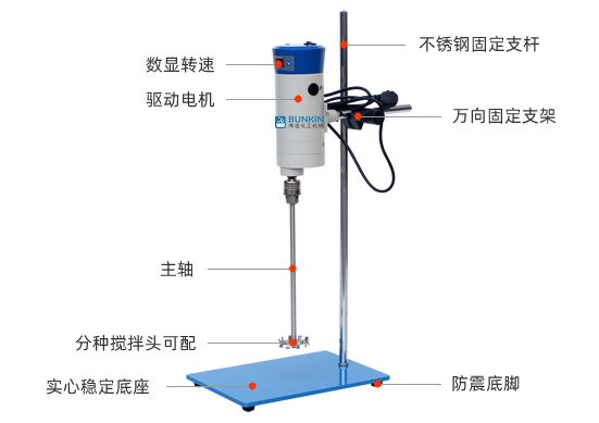 4、小巧设计 静音操作,结构合理,搅拌棒清洗装拆方便,根据工艺需要,更换不同的搅拌形式。
