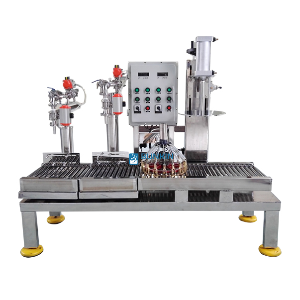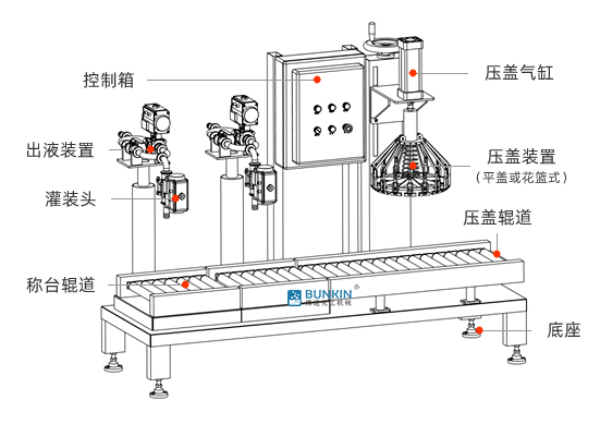 个性化设计,可一人完成操作,设定指定灌装量,灌装按钮一键完成自动清零,自动去皮功能。采用辊轴输送,可随操作工人习惯调整放桶位置均可灌装。