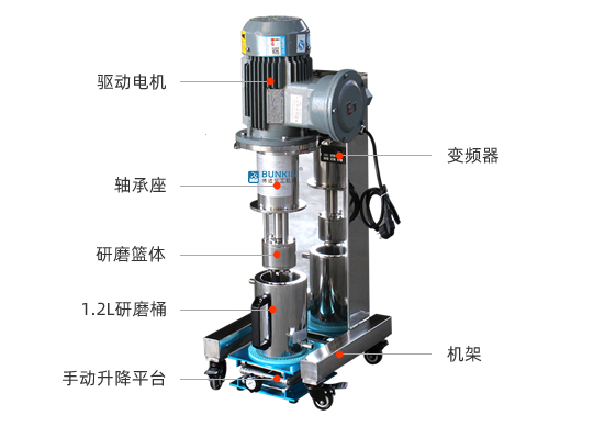 | BLS-0.75E | 0.75 | 0-3000 | 0.15 | 1.2L双层料缸 | 纯氧化锆珠 | 0.8-2.0 | 200 | 是 |