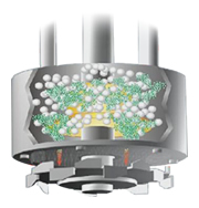 设备转速可达3000rpm,强大的弧线叶轮动能驱动,氧化锆拨杆使腔体内的研磨介质产生不规则运动,相互之间高速碰撞、摩擦,使物料粒径快速变小;研磨细度普遍可达10um以下,液液分散研磨可达亚微米甚至纳米级别。分离板采用整料CNC数控加工,不堵塞,使用寿命长,减少维护成本。