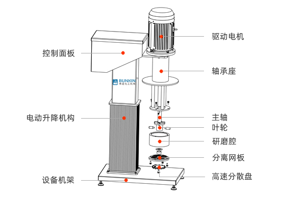 | BLS-1.1 | 1.1 | 0-3000 | 0.3L | 双层3L/5L | 95%高纯氧化锆珠 | 0.8-2.0 | 250 | 静音电动 |