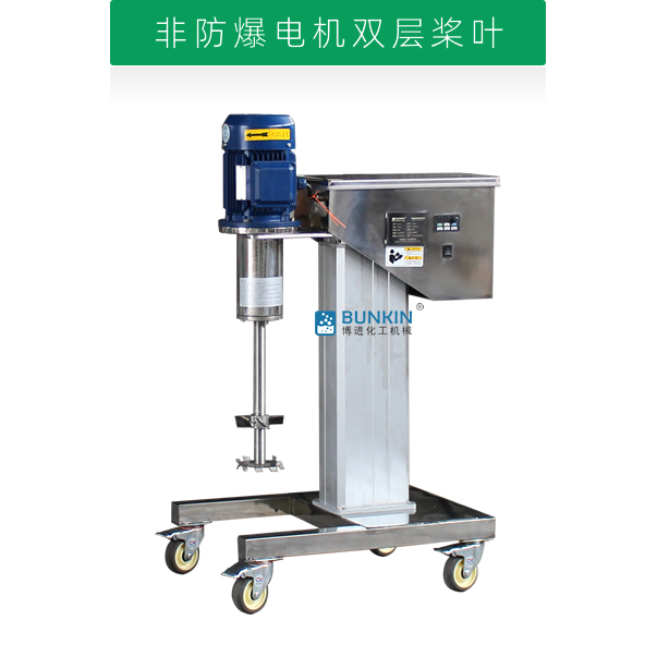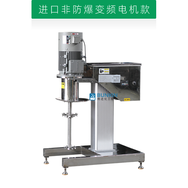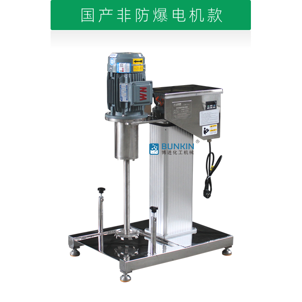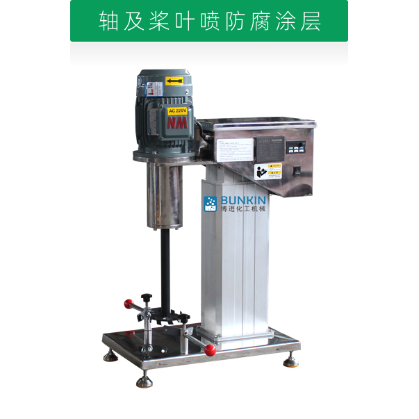 设备带有全不锈钢电动升降机构,能够快速升降和固定;分散盘采用内六角螺栓与主轴固定,能够方便快速拆卸更换,清洗容易;带有夹桶装置,可以快速将搅拌桶固定,防止桶在工作中发生位移造成安全事故。