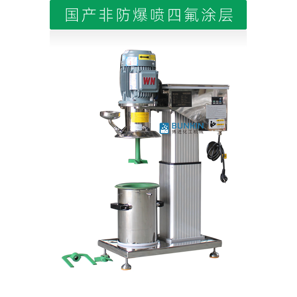设备带有电动升降,噪音低能够快速升降和固定密封桶;分散盘采用内六角螺栓与主轴固定,能够方便快速拆卸更换,清洗容易;带有锁扣密封条装置,可以快速将密封桶固定。