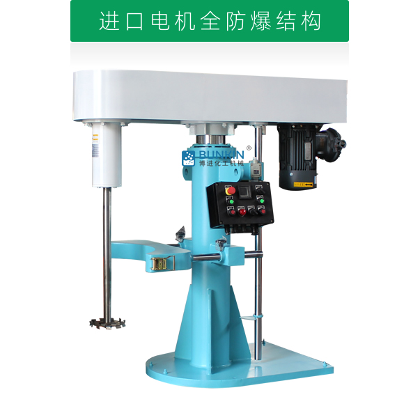 高速分散机通过分散盘的高速运转,使物料呈环状流,产生强旋涡,呈螺旋状下降到涡流底部。粒子间产生强烈的剪切撞击与磨擦,达到迅速分散、溶解、均匀混合、乳化的功能。通过液压泵工作驱动液压柱塞升降,带动整个传动机构和工作组升降。