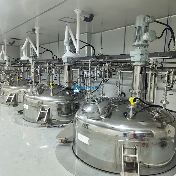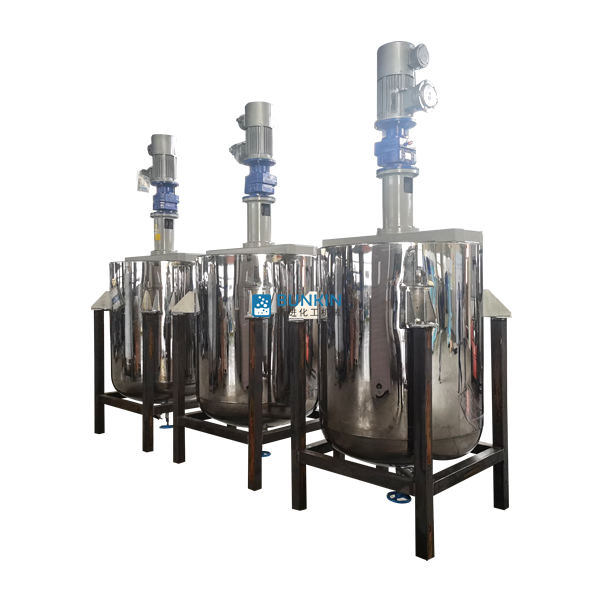 搅拌釜可根据需要配置1-2个高速分散机、乳化机,分散机、乳化设备转速可达2930rpm(常规1450rpm),线速度20m/s以上,能够快速的将粉料均匀分散到液料里面;物料由于受到极高的剪切力,分散均匀,形成很好的悬浮效果。