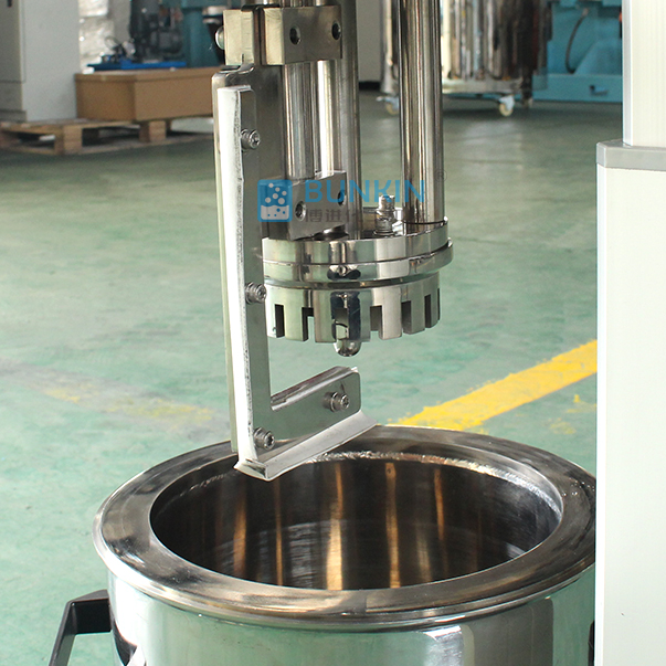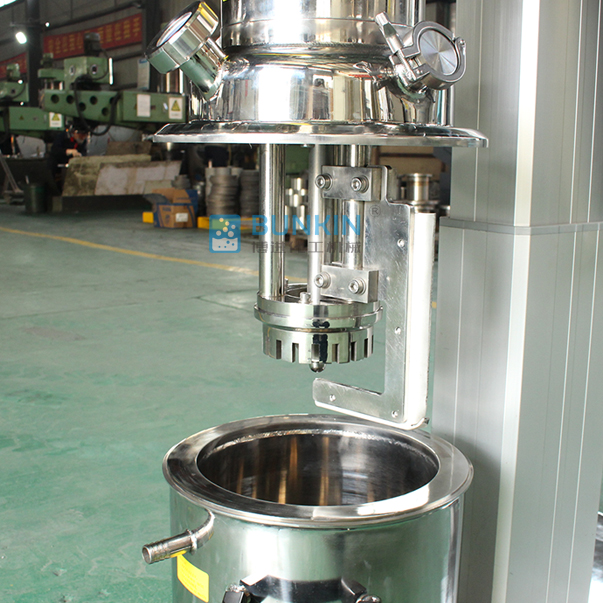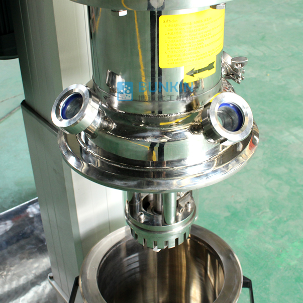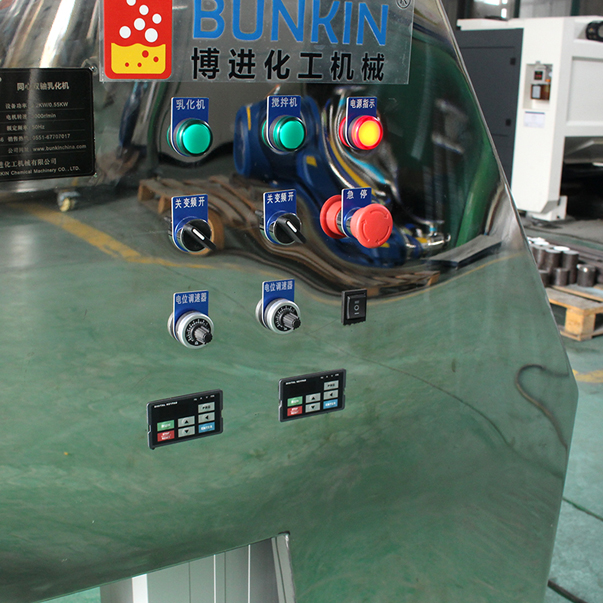 同心双轴乳化机由低速的框式搅拌和高速的乳化头组成,两者同心设置,两组搅拌器同时作业使物料受到强烈的剪切、混合作用,达到快速混合的目的;搅拌器一般分为锚式和蝶式两种,针对不同粘度、比重的物料和不同的生产工艺要求可以设计较好搅拌形式。高剪切乳化机可以快速的将一种相均匀物料分布到另一种或多种物料中,达到细化均质、分散乳化效果,产品稳定,不易分层。