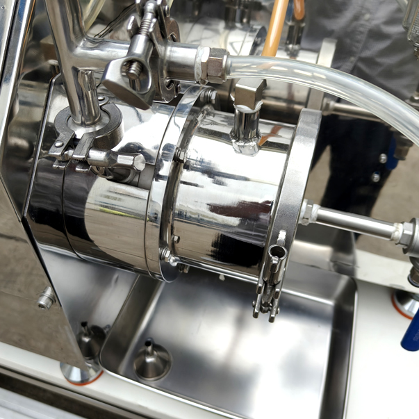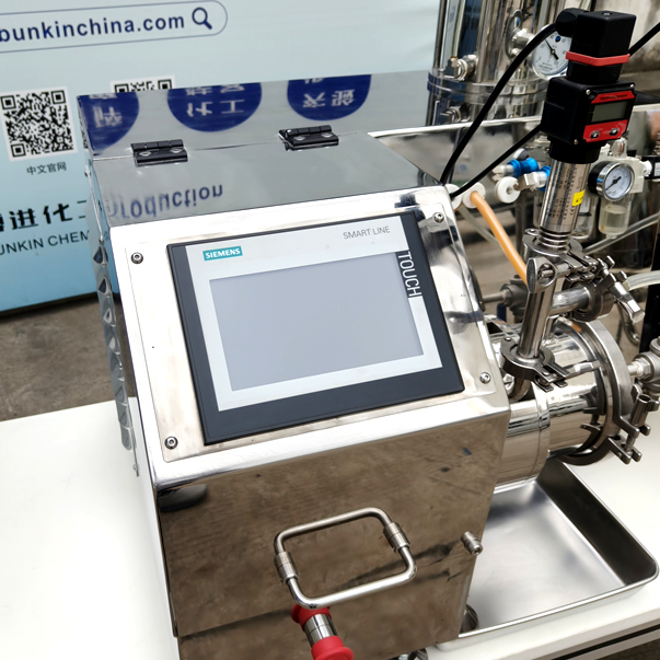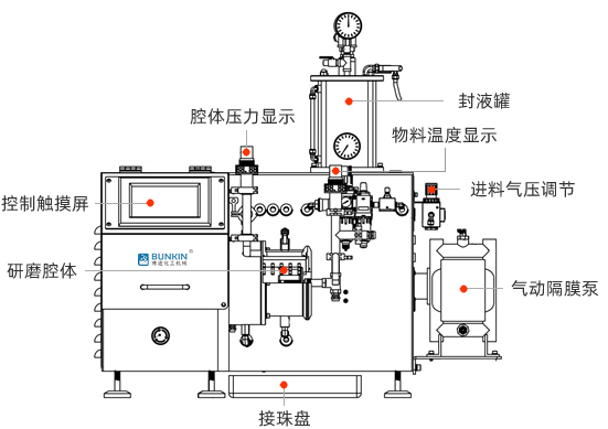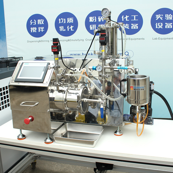 实验室纳米砂磨机通过 “组件协同 + 多力作用”,将微米级物料细化至 50-500nm,核心依赖研磨腔、搅拌系统、研磨介质、分离装置与温控系统的配合。?工作时先批次加入物料与分散剂,低速搅拌预混合,让分散剂吸附颗粒表面防团聚。随后搅拌系统高速旋转,带动 0.2-0.5mm 氧化锆珠(填充率 70%-80%)形成介质流,产生三种关键力:介质与组件间的剪切力撕裂颗粒,介质碰撞的冲击力击碎颗粒,介质摩擦的研磨力细化粒径。?达标物料在压力差作用下推向出料口,经筛网(孔径<介质粒径)分离介质后排出;未达标则循环研磨。全程温控系统通过水冷 / 风冷,将研磨腔温度维持在 25-40℃,避免温升导致分散剂失效或颗粒团聚,实现高效纳米级分散。